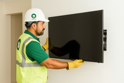 Professional TV mounting service by Dollarsmiley Handyman in Maryland. We securely install flat-screen TVs on drywall, brick, wood, etc — ensuring perfect alignment, clean cable management, and a modern, professional finish every time.